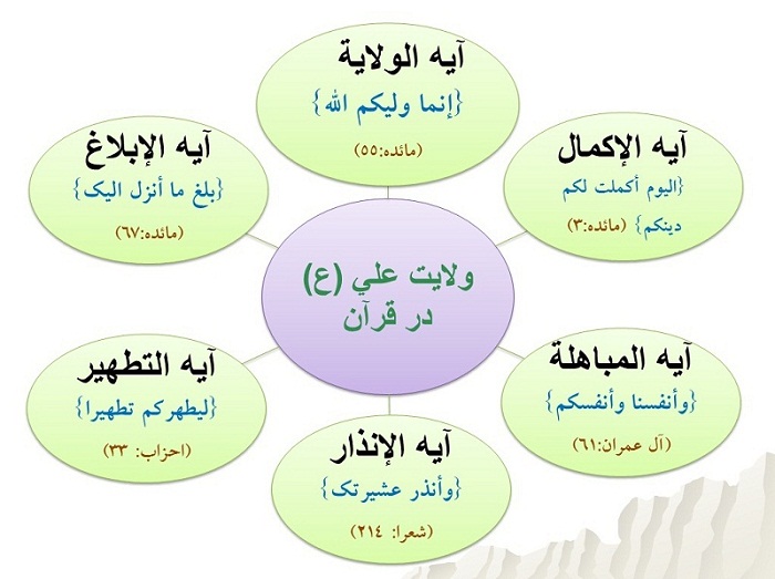 هنگامی كه پیامبر اسلام- صلی الله علیه وآله -در روز غدیر علی - علیه السلام - را به امامت نصب نمود و آوای ولایت او را سر داد پیك وحی جبرئیل امین آیه (الیوم اكملت لكم دینكم) را آورد[6].